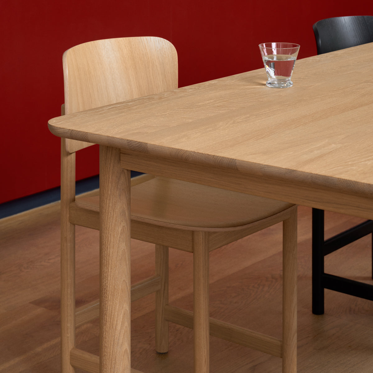 With its clean expression and honest materials, the Plan Wood Table integrates naturally into the Plan Collection. The fixed-size table is a simple four-legged design suited to smaller spaces or needs, functioning as a dining table, a home-office solution, or an intimate meeting table. The base is crafted from solid wood, while the tabletop is available in a range of materials, including solid oak, offering a warm and functional character. The table can be equipped with cable management, allowing cables to run discreetly through the leg, finished with a lid in black metal or surplus core leather. A timeless and versatile table that unites functionality with our strong heritage of wood craftsmanship.