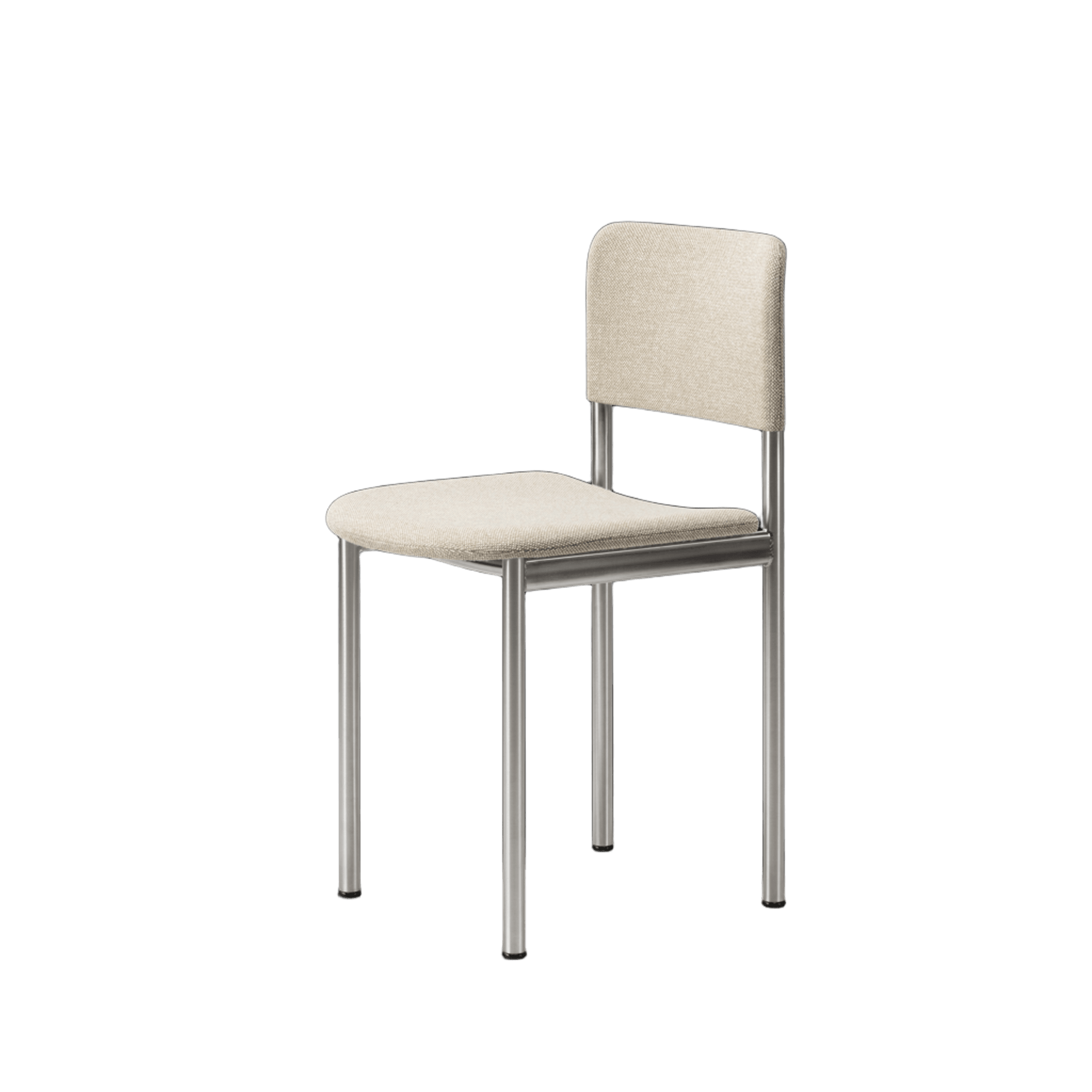 Fully upholstered chair with frame in tubular steel, powder coated or brushed steel.