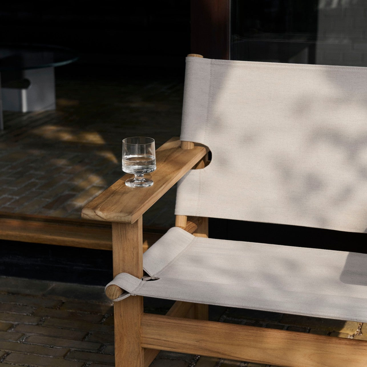 The Canvas Outdoor Chair combines Børge Mogensen's iconic design with modern versatility. This adaptation of Mogensen's classic design blends outdoor durability with indoor comfort. With its familiar form, solid teak frame, and textured canvas, the chair brings a sense of relaxed elegance to both outdoor and indoor settings.