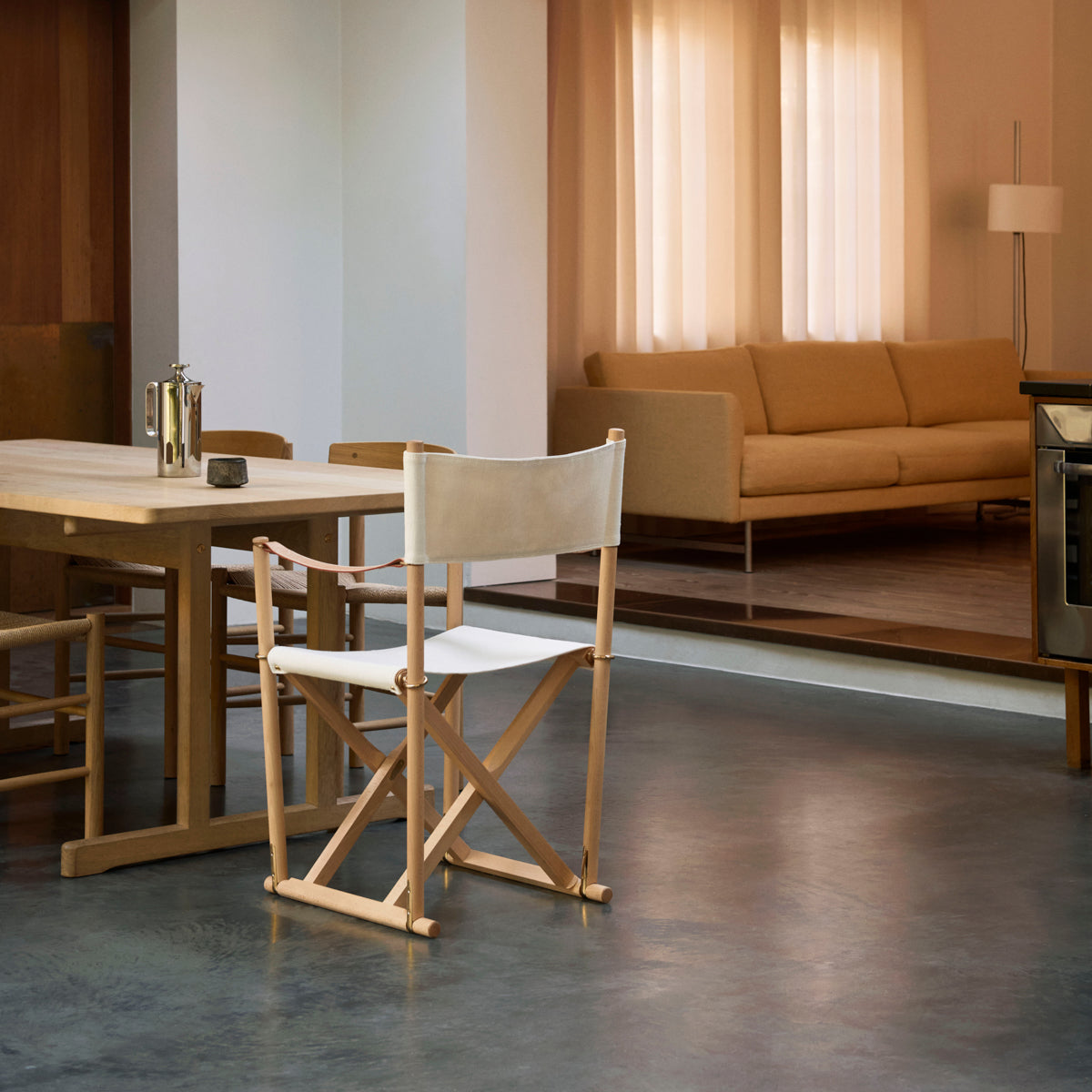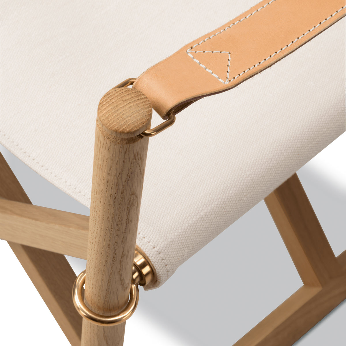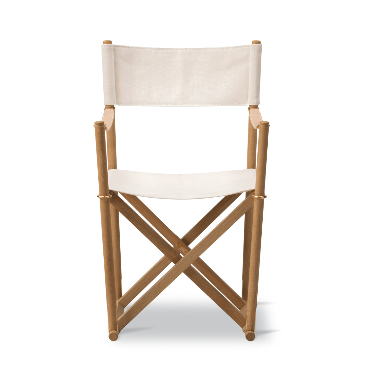 Crafted in solid wood with saddle leather armrests, an off-white cotton canvas seat, and solid brass fittings, the MK16 Folding Chair represents a timeless design where craftsmanship, materials, and function exist in quiet balance.