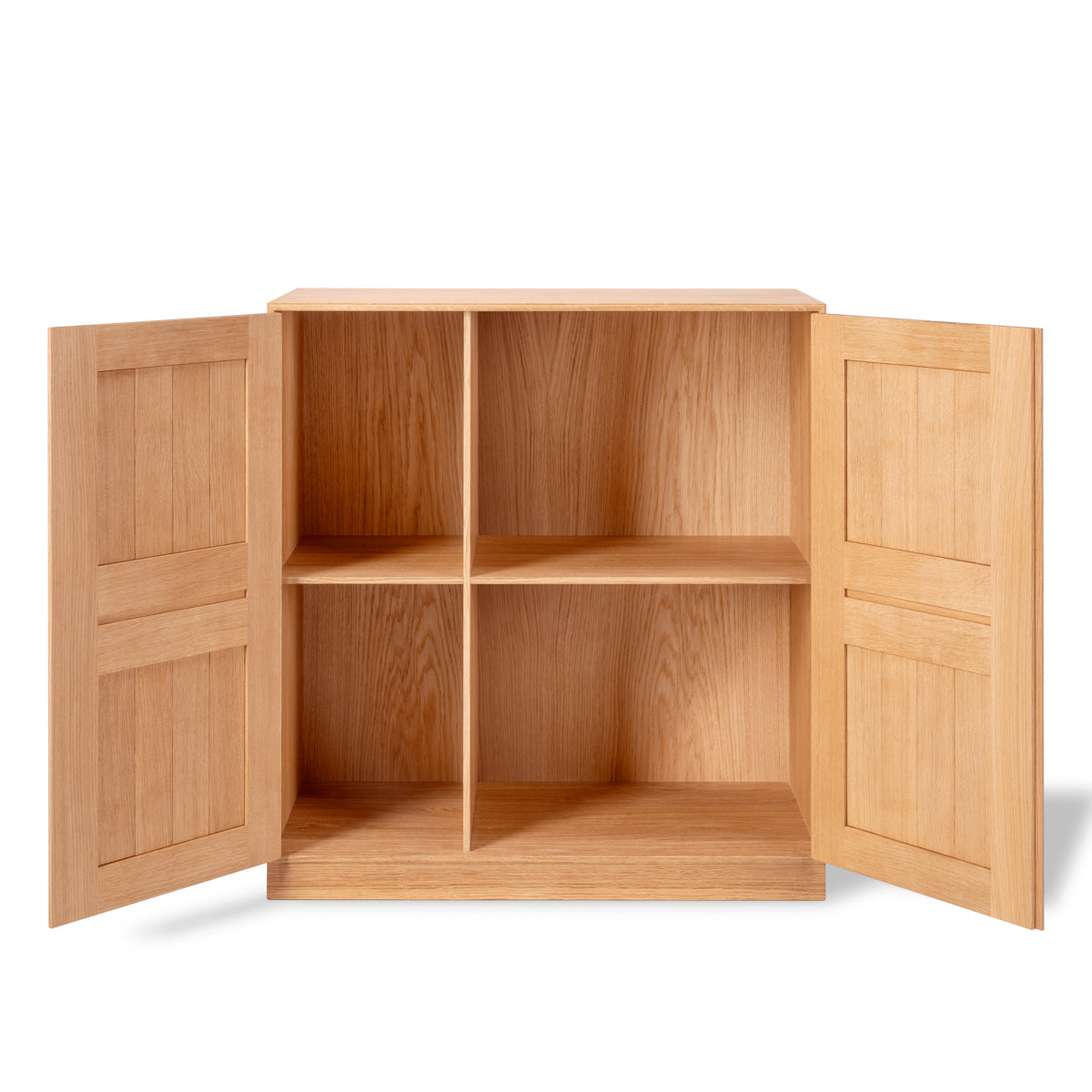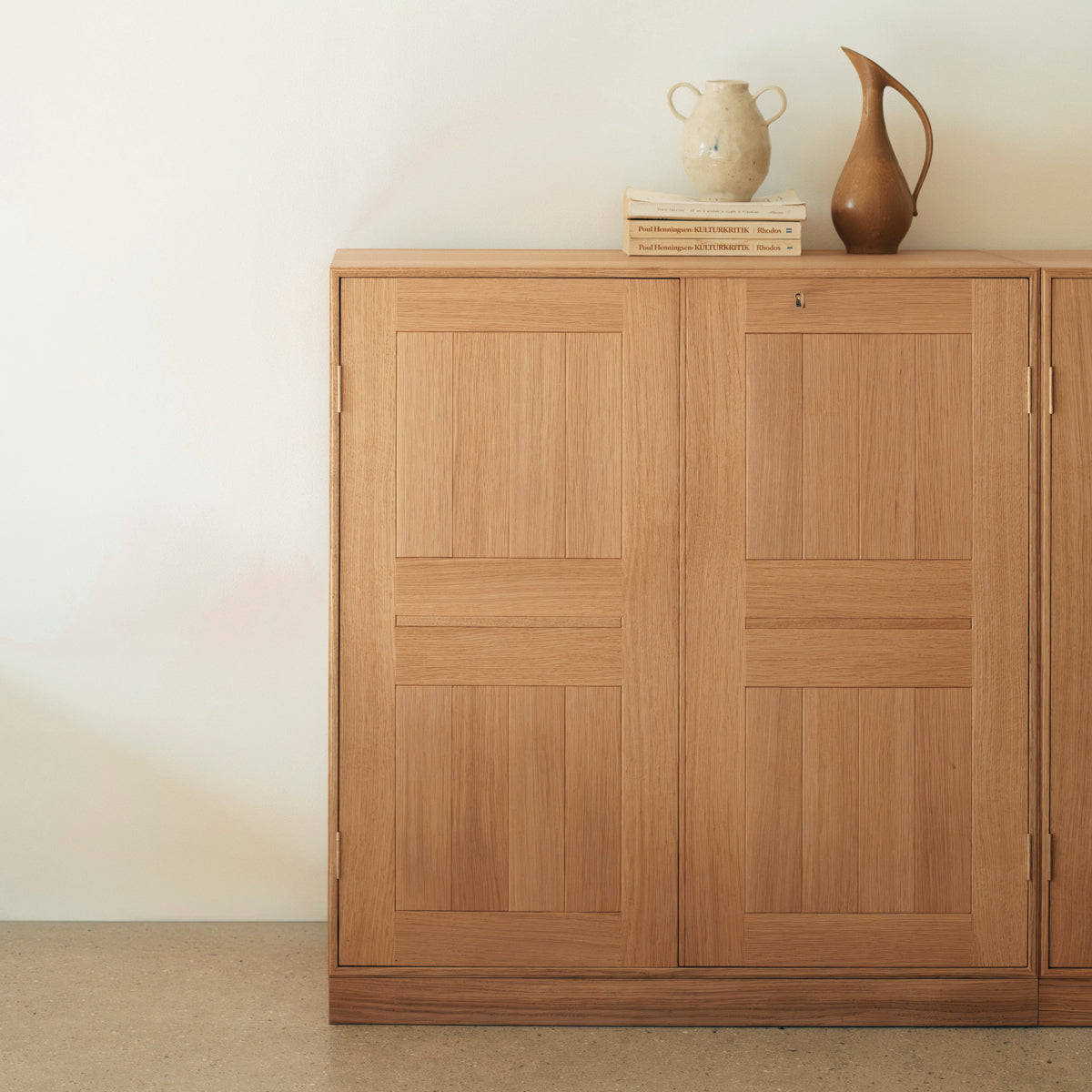 MK73 is part of Mogens Koch's iconic shelving system from 1928. A cabinet module with four compartments and double filling doors that combines open functionality with the possibility of discreet storage.